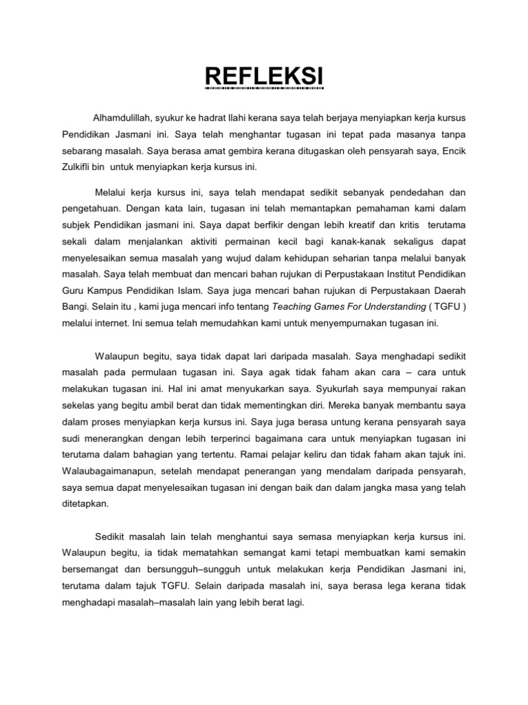 Contoh Refleksi Kerja Kursus Pendek Titas Pdf